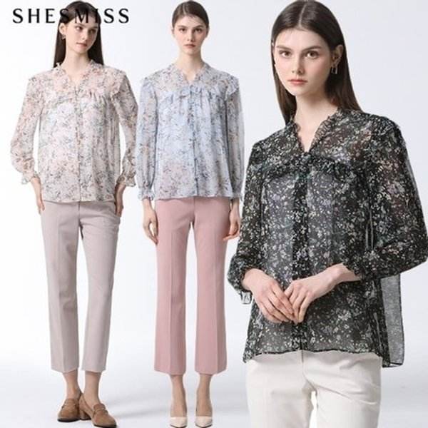 Blusa floral con volantes para mujer con etiqueta de compras de TV coreana