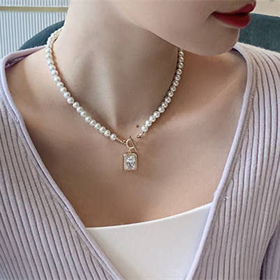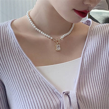 Collar con Colgante de Perlas de Agua Dulce Versión Coreana para Mujer, Cadena de Clavícula de Lujo Ligero y Alta Gama, Versátil