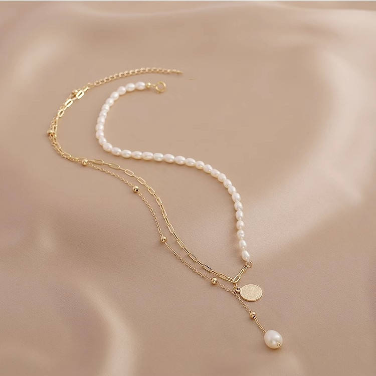 Collar de Alta Gama Versión Coreana, Diseño de Nicho Femenino con Colgante de Perlas de Agua Dulce Empalmadas, Cadena para Clavícula, Belleza Natural