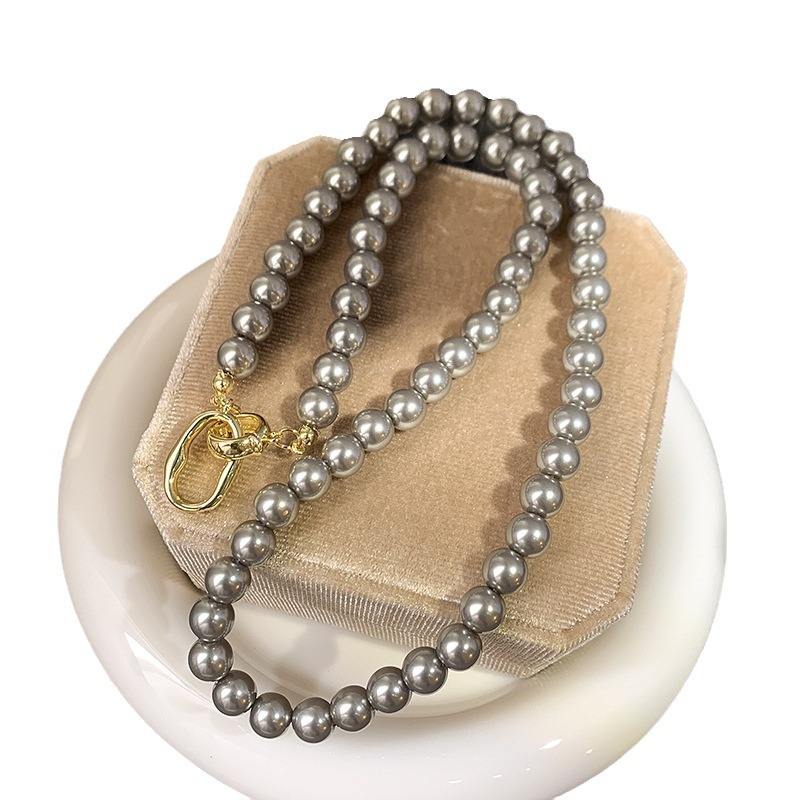 Collar de Mujer de Alta Gama Versión Coreana, Perla Gris Cáñamo con Cadena Grande de Lujo Discreto para Suéteres
