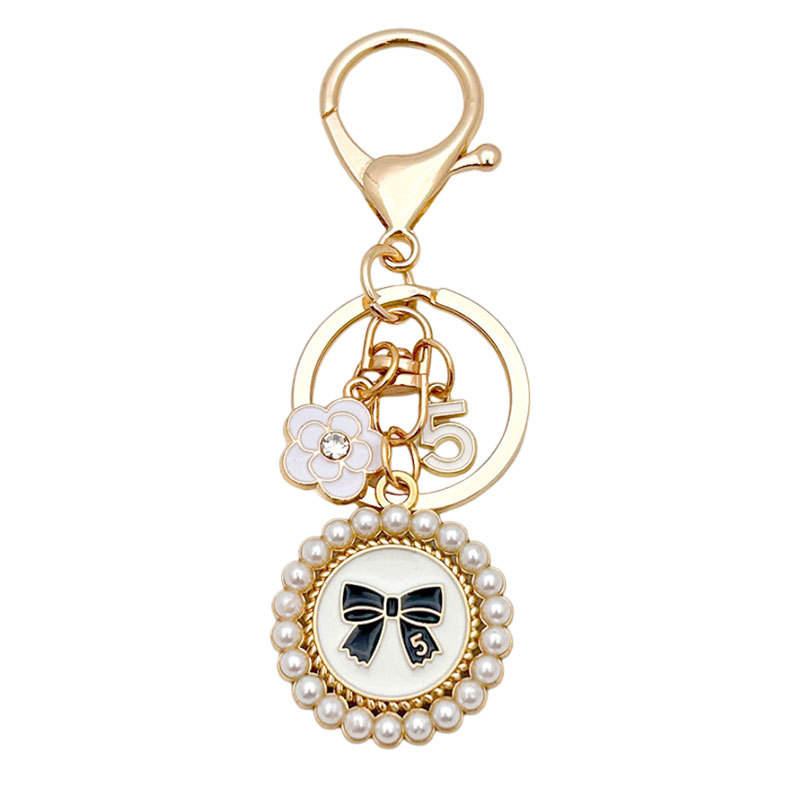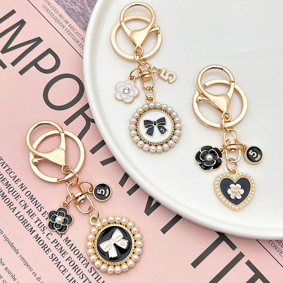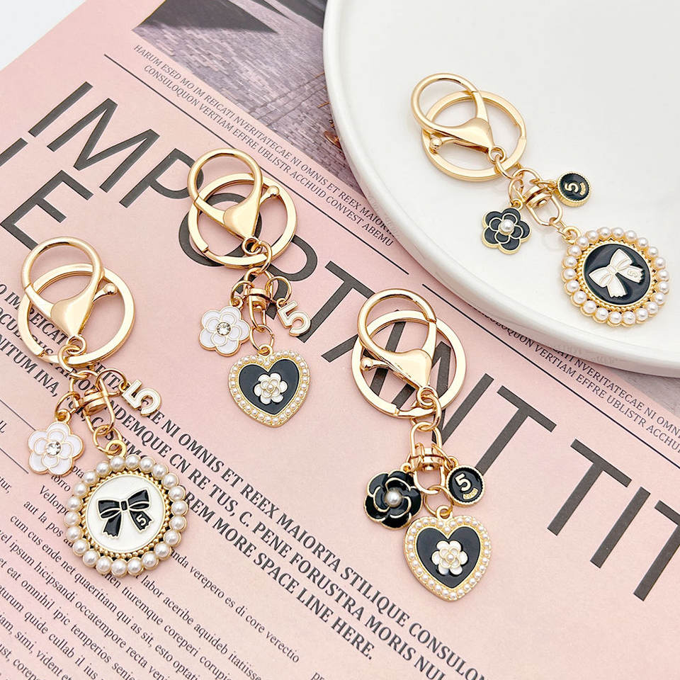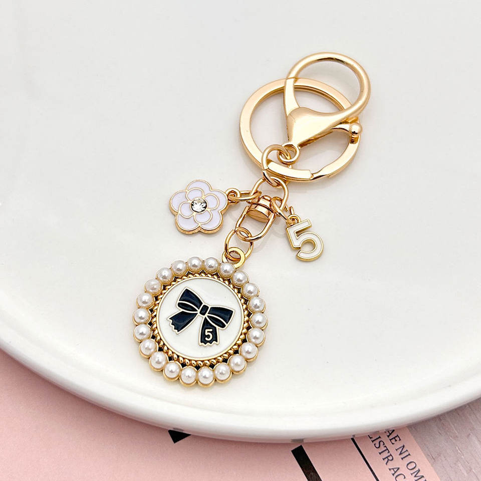 Llavero Metálico Estilo Coreano Xiaoxiangfeng, Moderno, con Forma de Corazón y Lazo, Decorado con Perlas, Colgante para Mochila, para Damas y Estudiantes