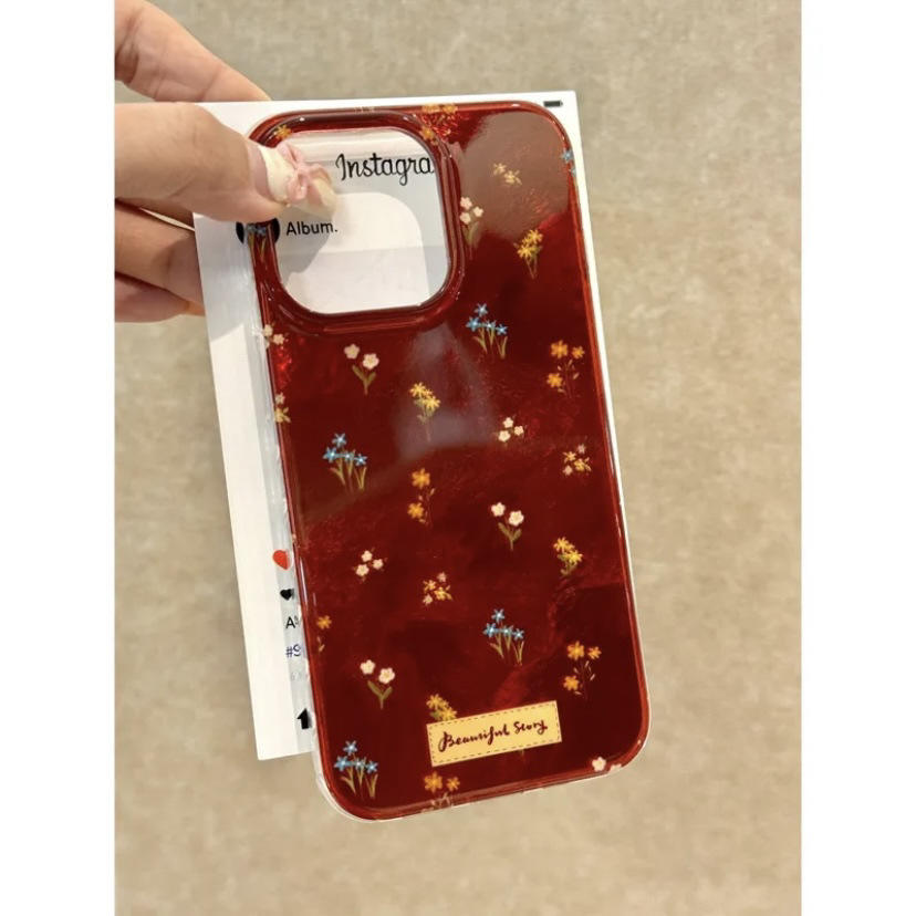 Funda para iPhone 16 Pro Max/15/14, nuevos modelos, estilo coreano, color vino tinto, pantalla completa, diseño floral pequeño, para iPhone 13