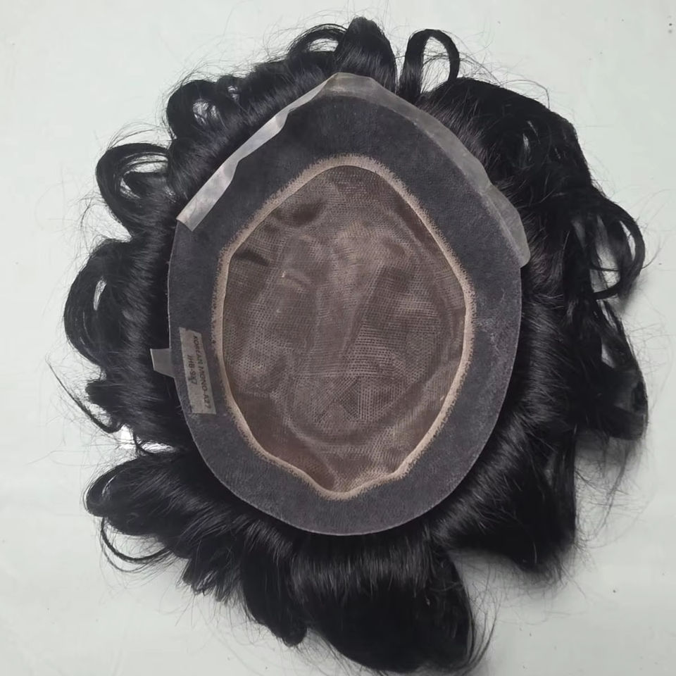 Peluca de Cabello Indio Mono Korian para Hombre, Ondulado Natural, Ondulado Profundo, Prótesis Capilar Taz Hair BD