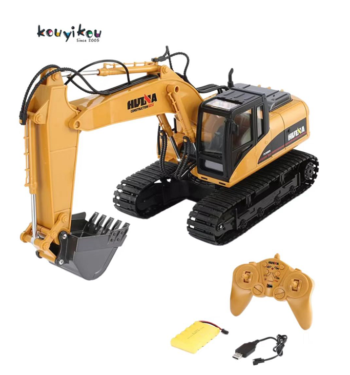 Kouyikou Venta caliente HUINA 1580 RC Excavadora Metal RC Camión Big Digger Excavadora Aleación completa Coche eléctrico RC