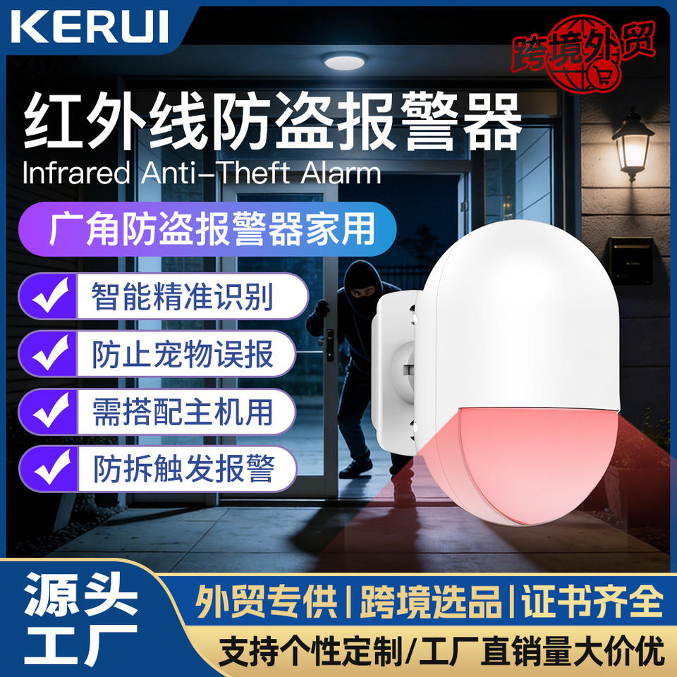 Sensor de Movimiento PIR Inalámbrico Kr-P829, Alcance de 100M, Alarma Sonora, Detección de Seguridad Interior y Exterior