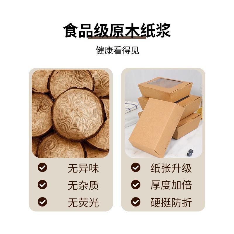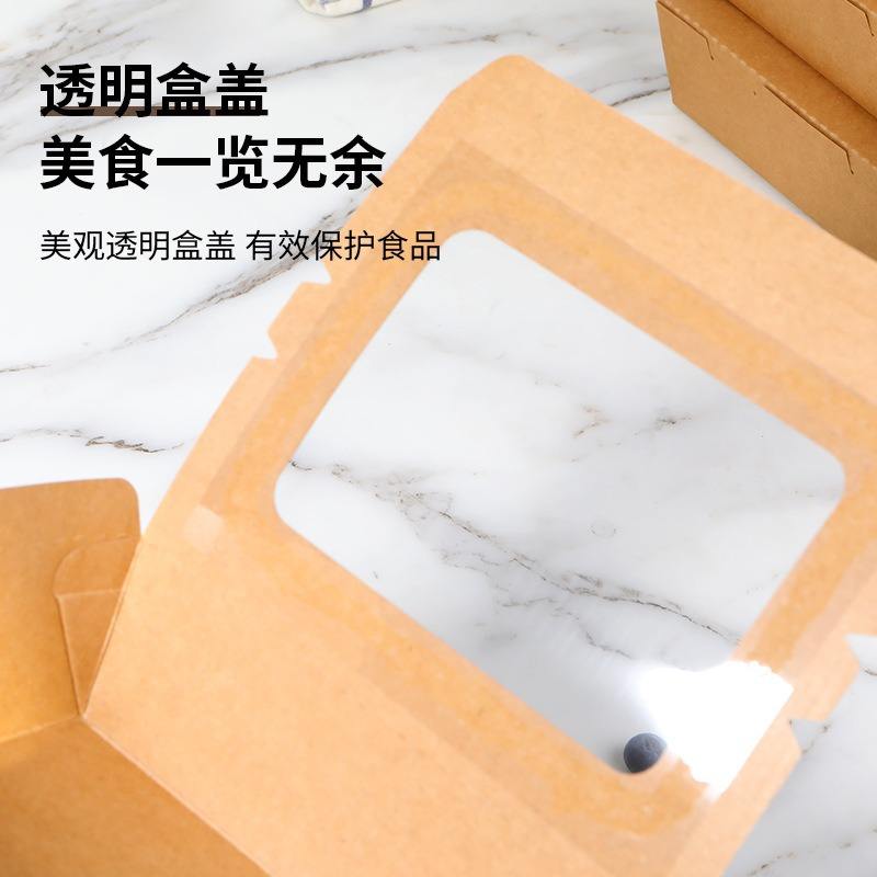 Caja de Almuerzo Desechable de Papel Kraft Rectangular con Tapa Transparente, Envase para Llevar de Grado Alimenticio