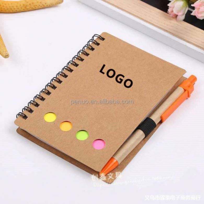 Bloc de Notas de Papel Kraft con Tapa Dura, Adhesivos Personalizados para Índice, Bloc de Notas Espiral, Pestañas Adhesivas para Libros, Bloc de Notas con Logotipo Personalizado y Bolígrafo
