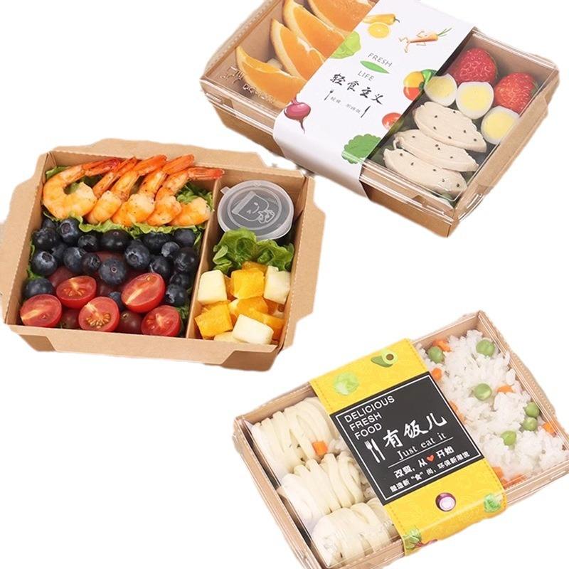 Caja de almuerzo de papel kraft con doble compartimento, contenedor desechable para comida, para sushi, ensalada, comida ligera para llevar, ecológico, apto para microondas.
