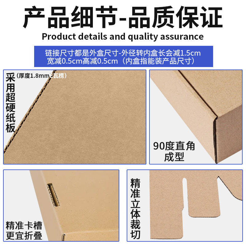 Caja de Embalaje de Papel Kraft Rectangular de Tres Capas Corrugadas de 13 cm de Ancho y 33-52 cm de Largo, Embalaje General en Blanco Personalizable