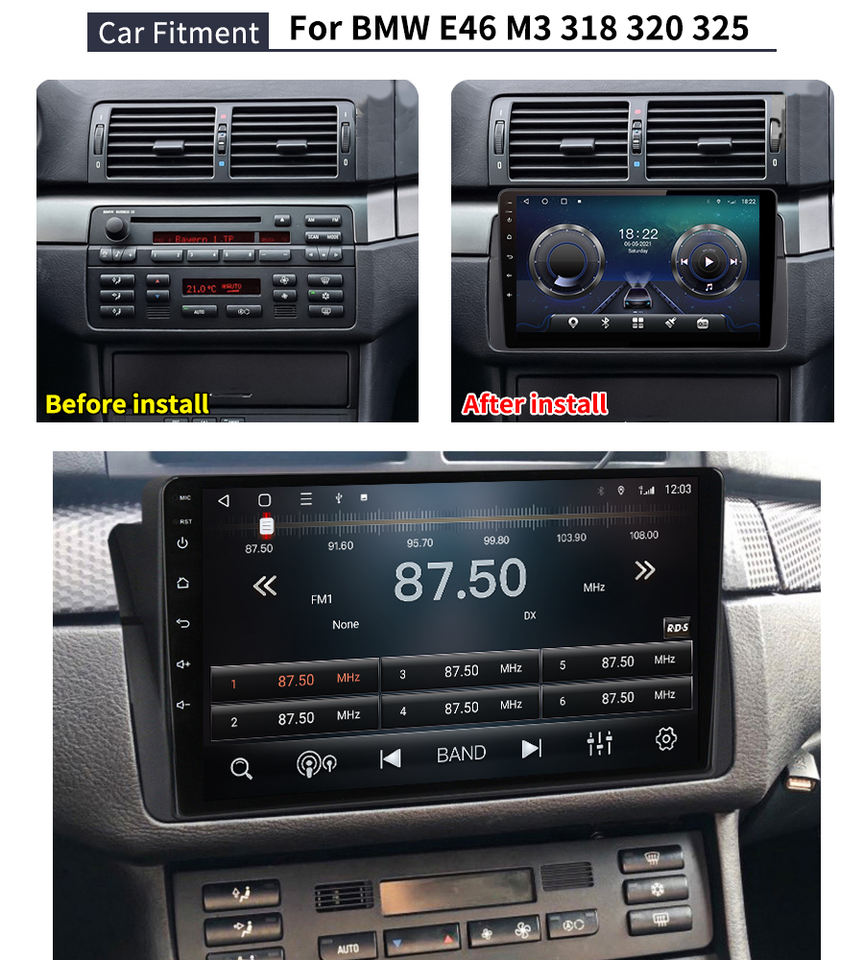 Krando 9 pulgadas Android Unidad Principal para BMW E46 M3 318 320 325 coche Multimedia Radio navegación Autoradio inalámbrico CarPlay 4G GPS