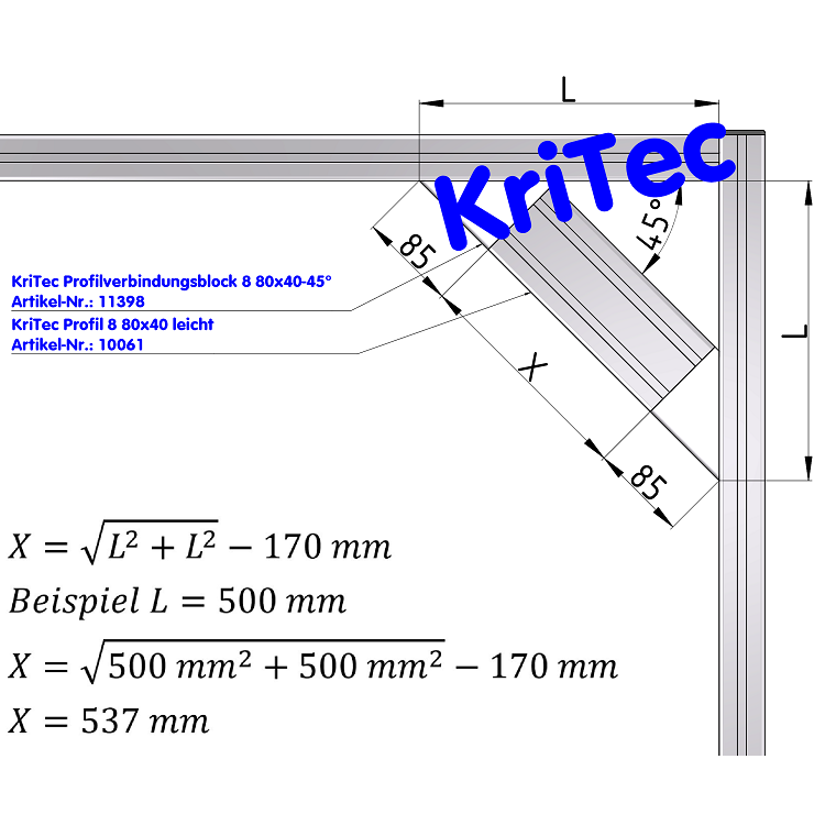 KriTec Bloque de Conexión de Perfil 8 80x40-45°