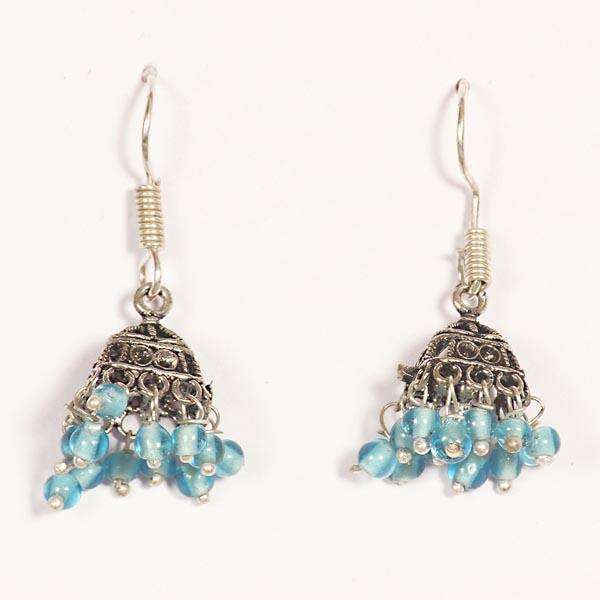 Kriaa 1301611 gotas azules negro oxidado Jhumkis clásico étnico de moda chapado en oro pendientes de aro de latón corte princesa forma de diamante