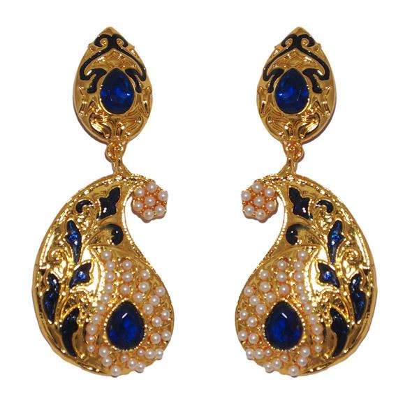 Kriaa Blue Meenakari Pendientes de gota de diamantes Chapado en oro Dangler Hoop Patrón de número geométrico Oro rosa para boda y fiesta