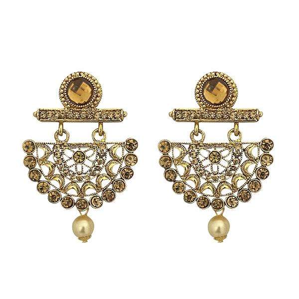 Kriaa Pendientes con Colgante de Piedra Austriaca Marrón Kundan Chapado en Oro Blanco con Perla y Diamante para Bodas-1315903