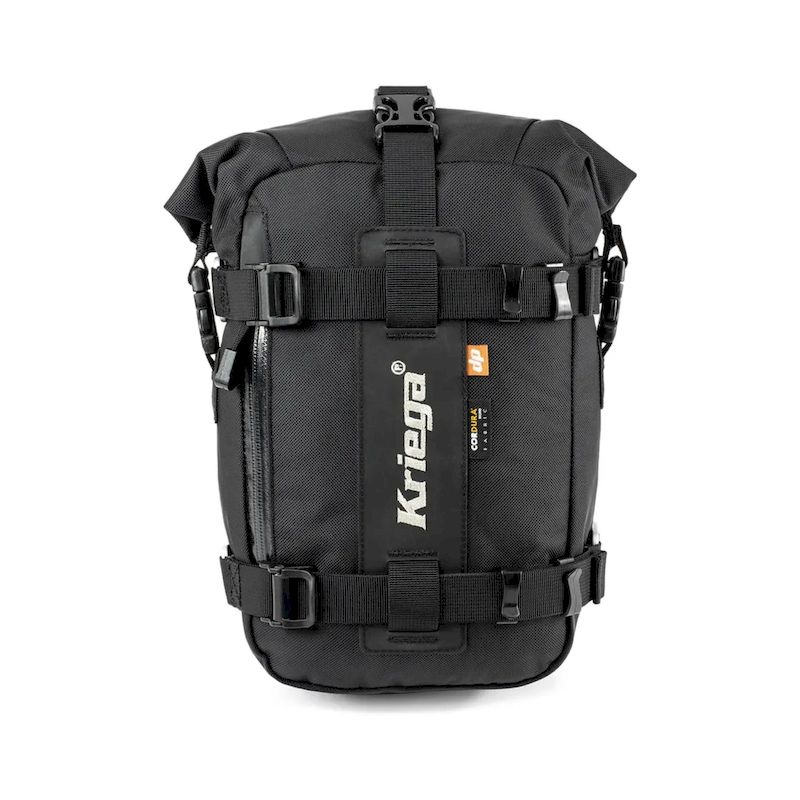 Bolsa de sillín compacta impermeable de PVC Kriega US-5 para cualquier motocicleta con características de bolsas para motocicleta y soporte trasero