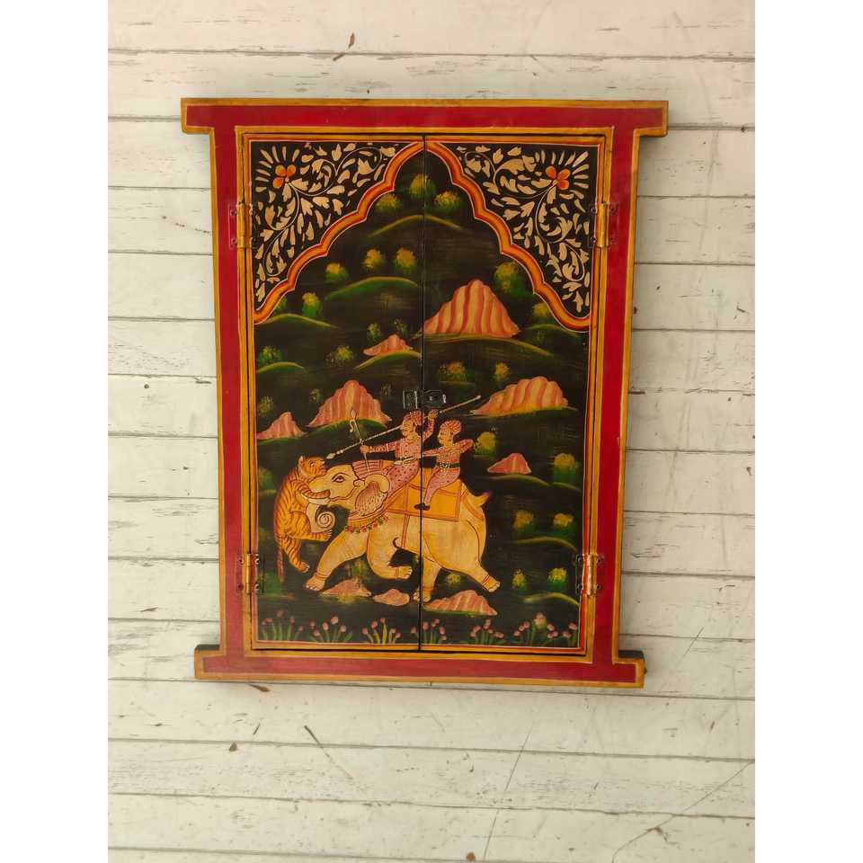 Krishna Radha & Rajasthani Art Ventana de madera Colgante de pared