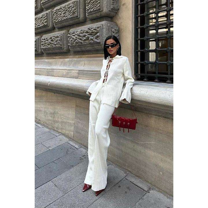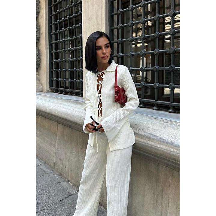 Conjunto de Tejido de Punto Acanalado Krysia 9959 con Detalle de Amarre Transpirable