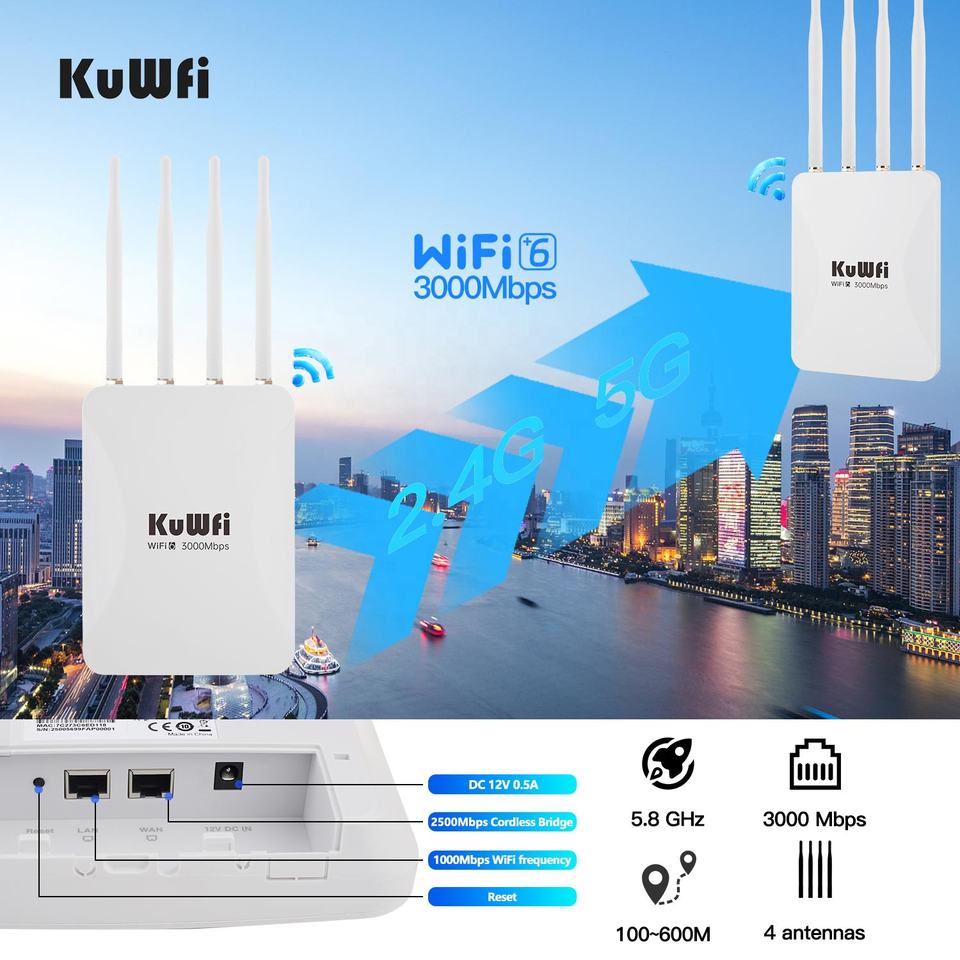 Punto de Acceso para Exteriores KuWFi, Cobertura Máxima de 300m, WAN de 2.5G, 3000Mbps, AP Inalámbrico Solar para Venta y Facturación de Hotspot WiFi