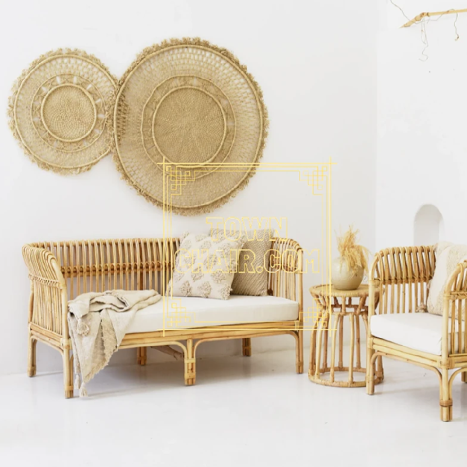 Juego de sofás Kulo Cane de ratán. Muebles naturales tejidos a mano. Estilo bohemio y costero del fabricante indio a precio mayorista