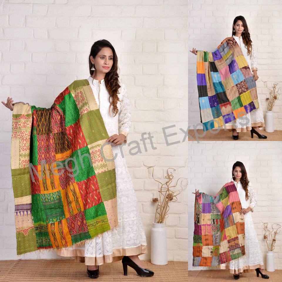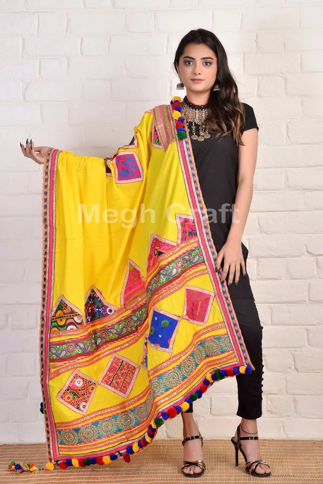 Chal de Algodón con Bordado Kutch y Patchwork, Estilo Boho, Gitano, Hippie, para Mujer, para el Verano, para Usar en Navratri, Tradicional de Gujarat