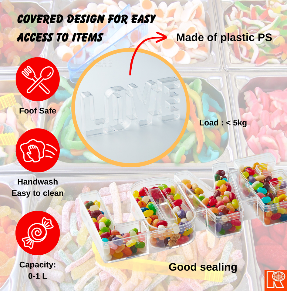 Product name:LOVE Word Shaped Clear Plastic Candy Container Box