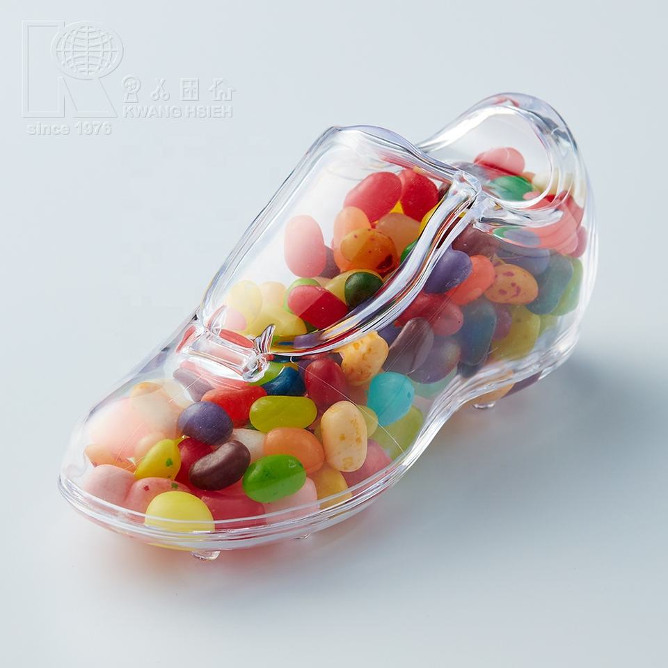 Nombre del producto:Recipiente de caramelo de plástico transparente pequeño en forma de bota de fútbol
