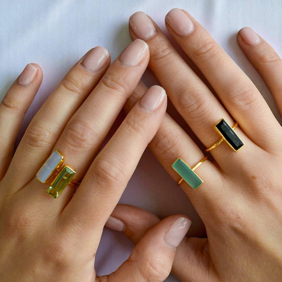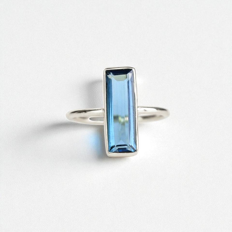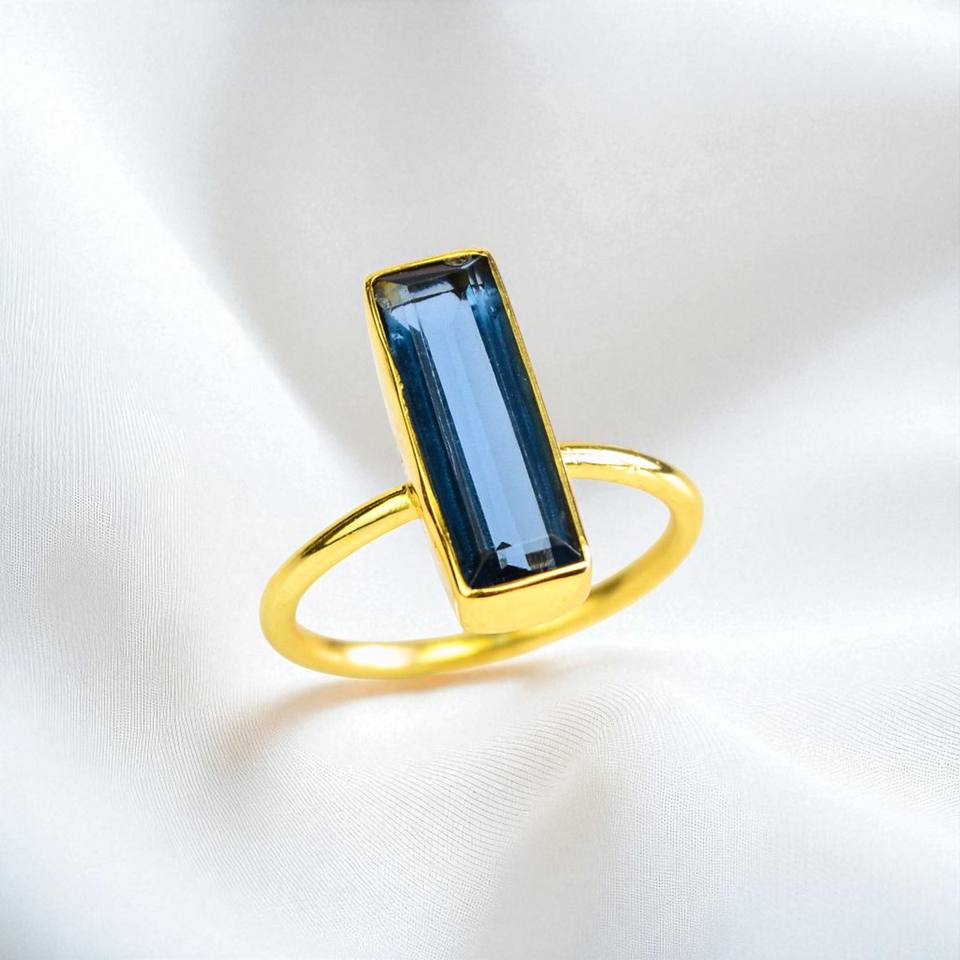 Anillo Rectangular con Bisel de Cianita, Chapado en Oro, Plata de Ley, Hecho a Mano, Joyería Minimalista