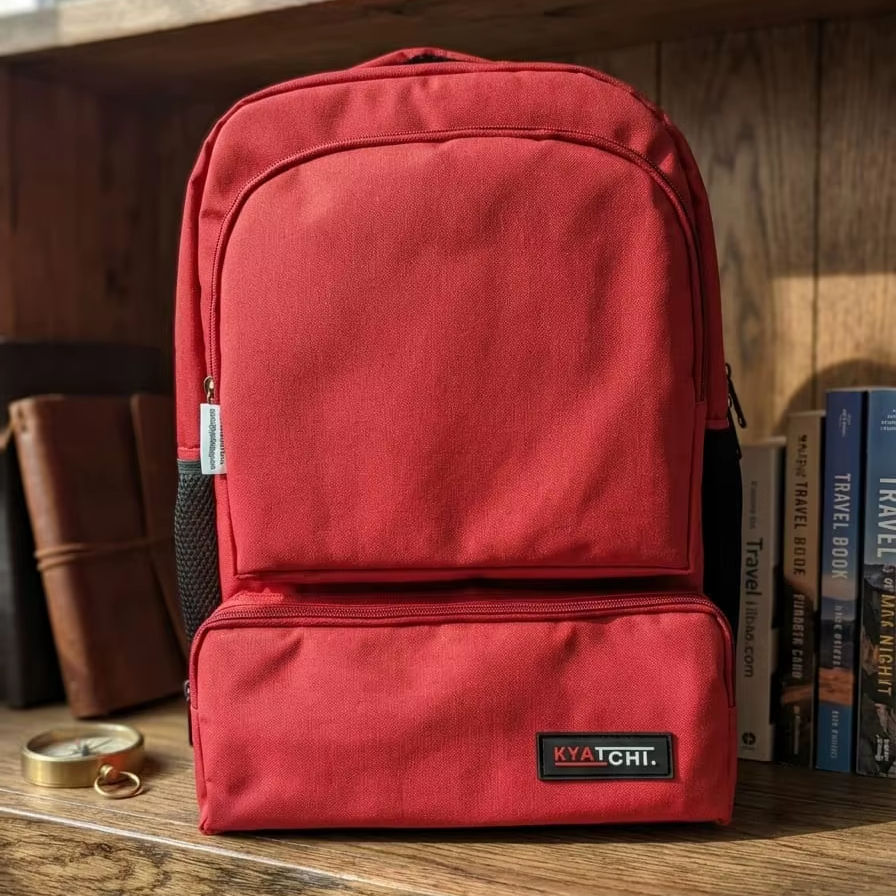 Mochila Escolar Kyatchi de Gran Capacidad de 18 Pulgadas, Modelo 002, Estilo Normcore/Minimalista, Dos Compartimentos Principales, Poliéster Resistente al Agua