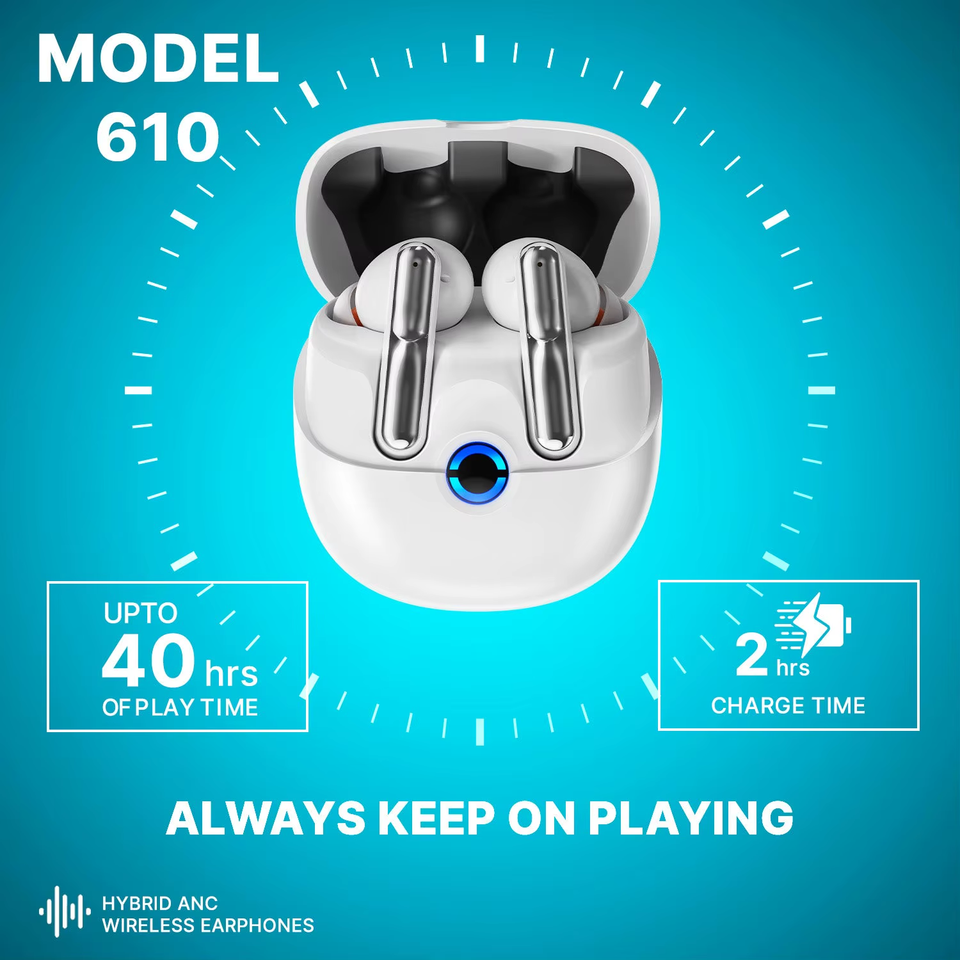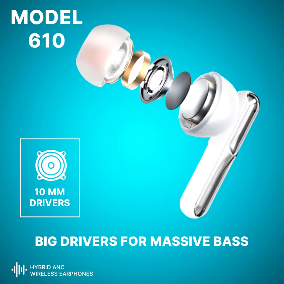 Audífonos Inalámbricos Kyptec 610 Híbridos con ANC, Audio Nítido, Cancelación Activa de Ruido para Música y Llamadas
