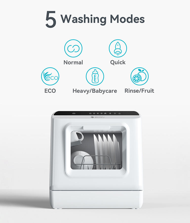 Lavavajillas inteligente pequeño Kyvol, 5 ciclos de lavado, secado térmico, bajo ruido, control de aplicación inteligente, lavavajillas