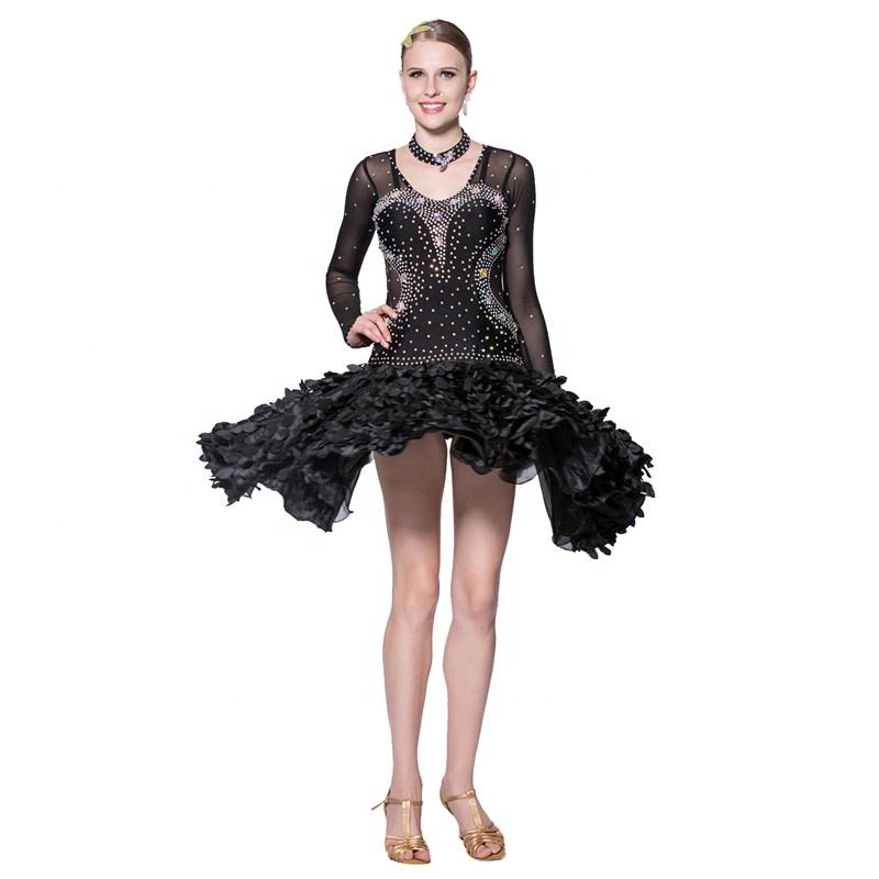 L-13376 Nuevo Vestido de Baile Latino con Pedrería y Gran Cola, Traje de Actuación, Vestido de Competición de Baile en Venta