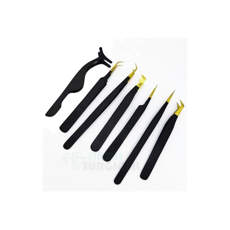 Pinzas de pestañas con punta dorada en forma de L Volumen ruso forma personalizada Ventas calientes CE ISO Aprobado Parte superior de nuestras producciones