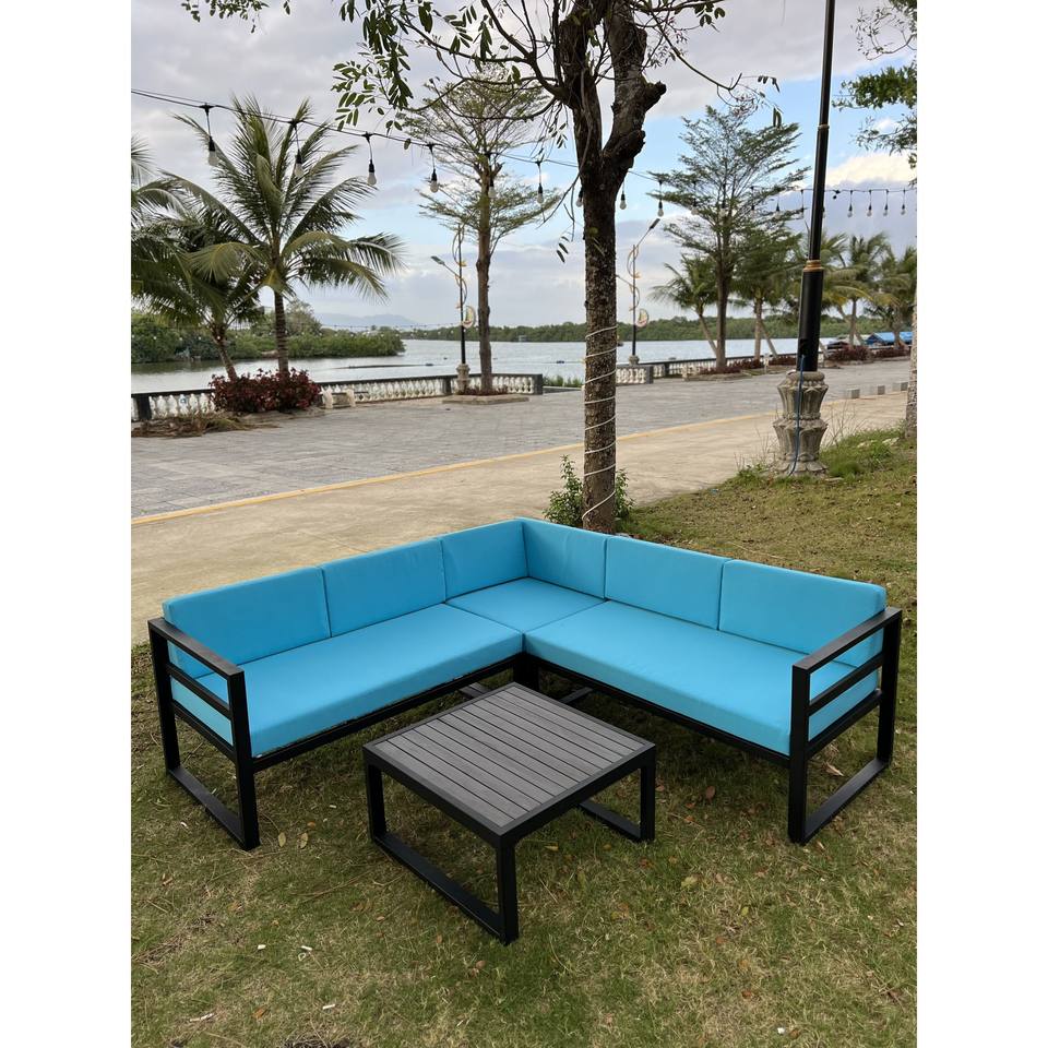 Juego de sofás seccionales para exteriores en forma de L con cojines y mesa de centro Colección de muebles de jardín