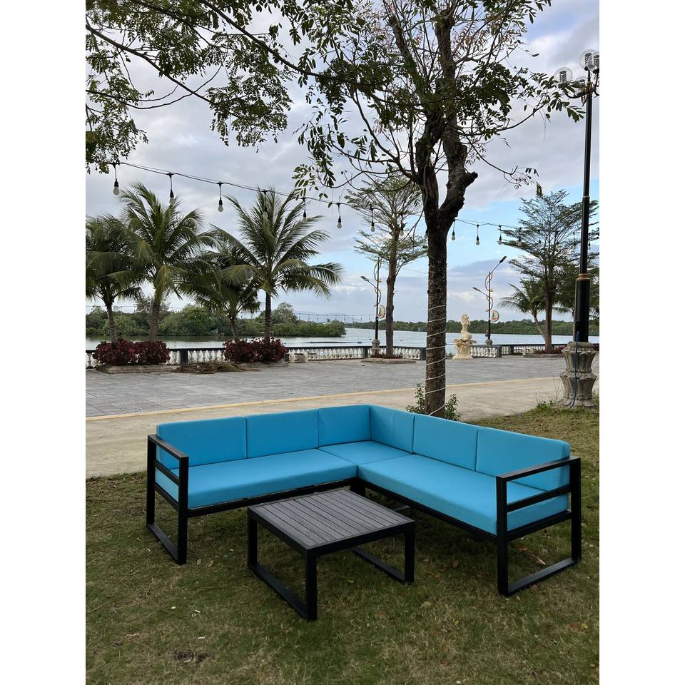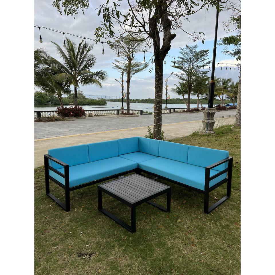 Juego de sofás seccionales para exteriores en forma de L con cojines y mesa de centro Colección de muebles de jardín