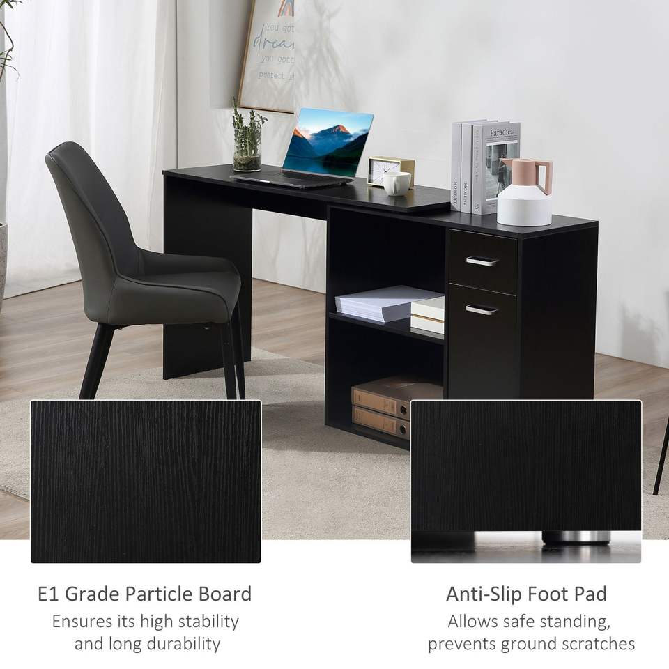 Escritorio de Computadora en Forma de L con Rotación de 180 Grados, Estantes de Almacenamiento, Cajonera y Estación de Trabajo para Oficina en Casa
