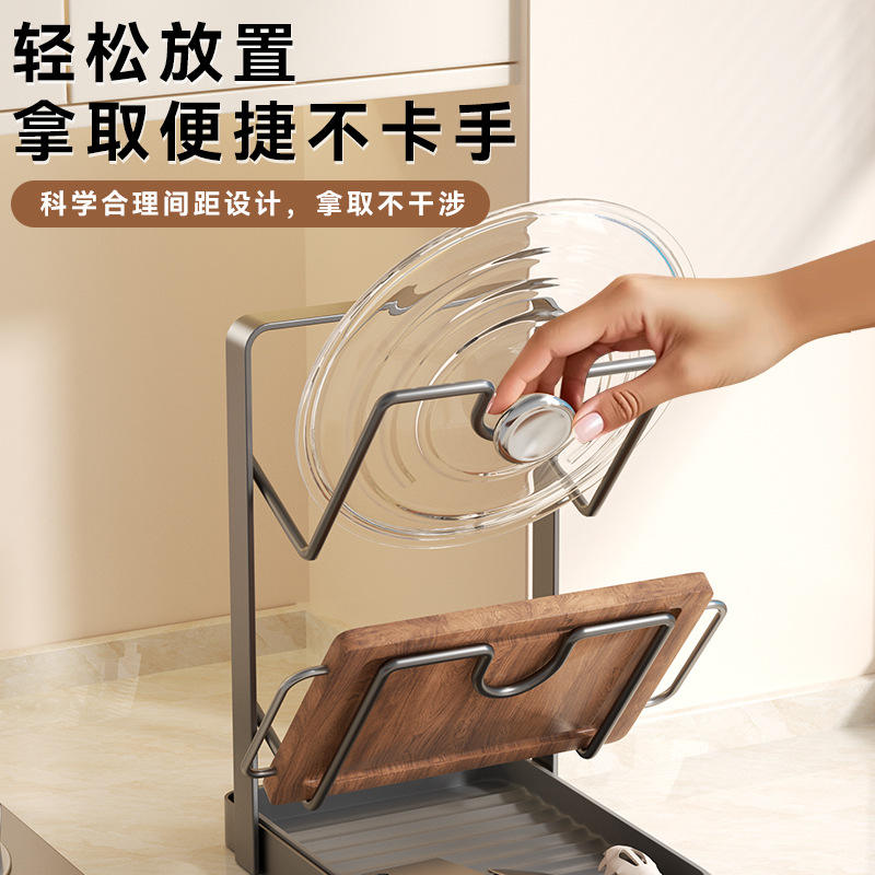 Escurridor de encimera en forma de L con soporte, organizador cuadrado para tapas de ollas y tabla de cortar, diseño de mesa