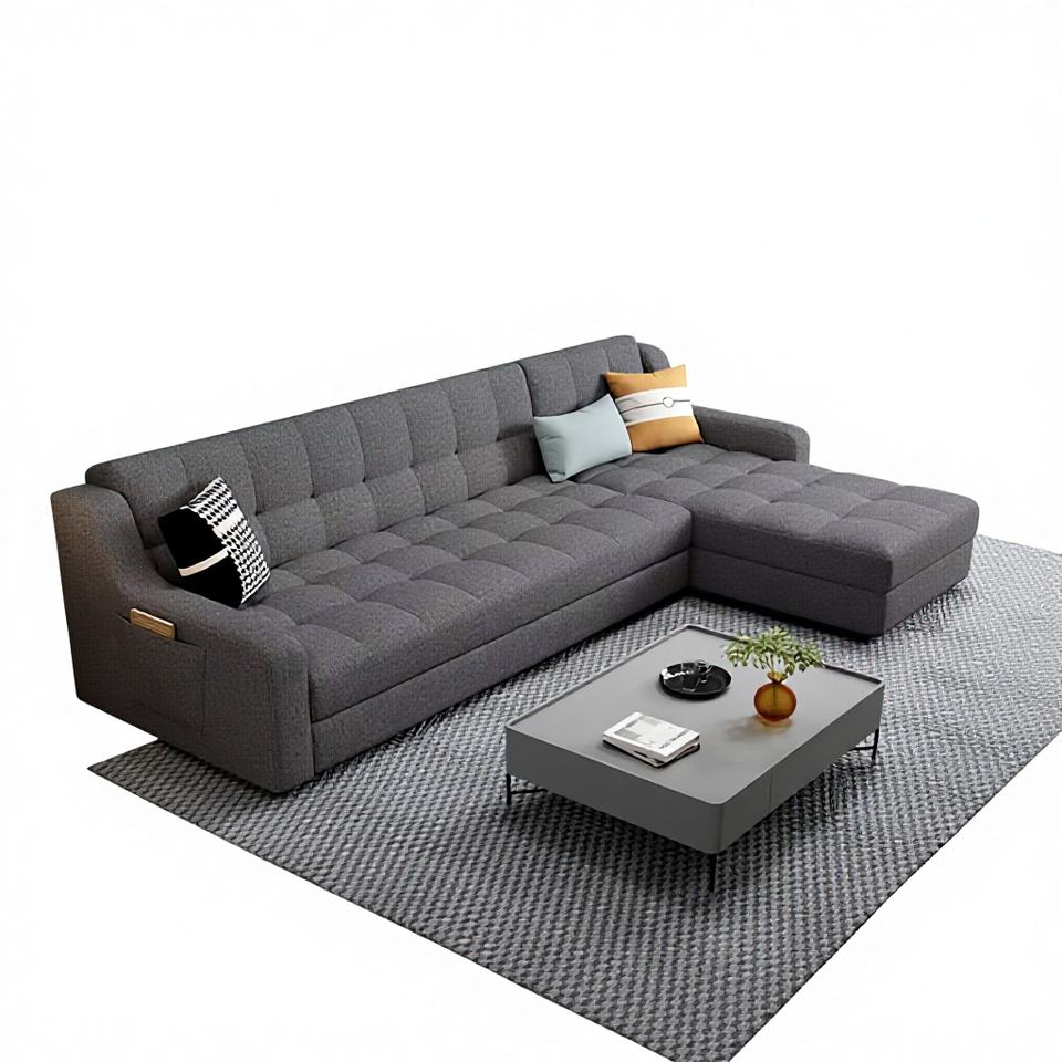 Sofá de Tres Plazas en Forma de L, Diseño Europeo, Extensible, Plegable, Inflable, Ecológico, de Espuma, sin Brazos, de Cuero PU, para Apartamento