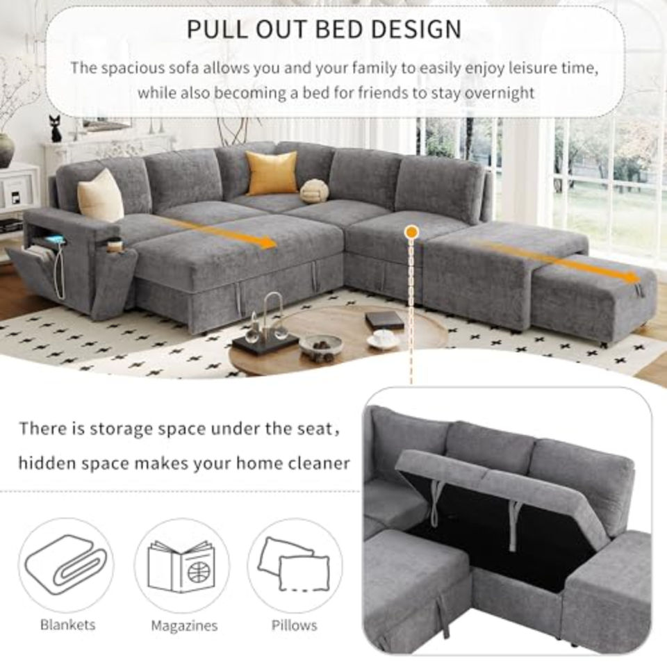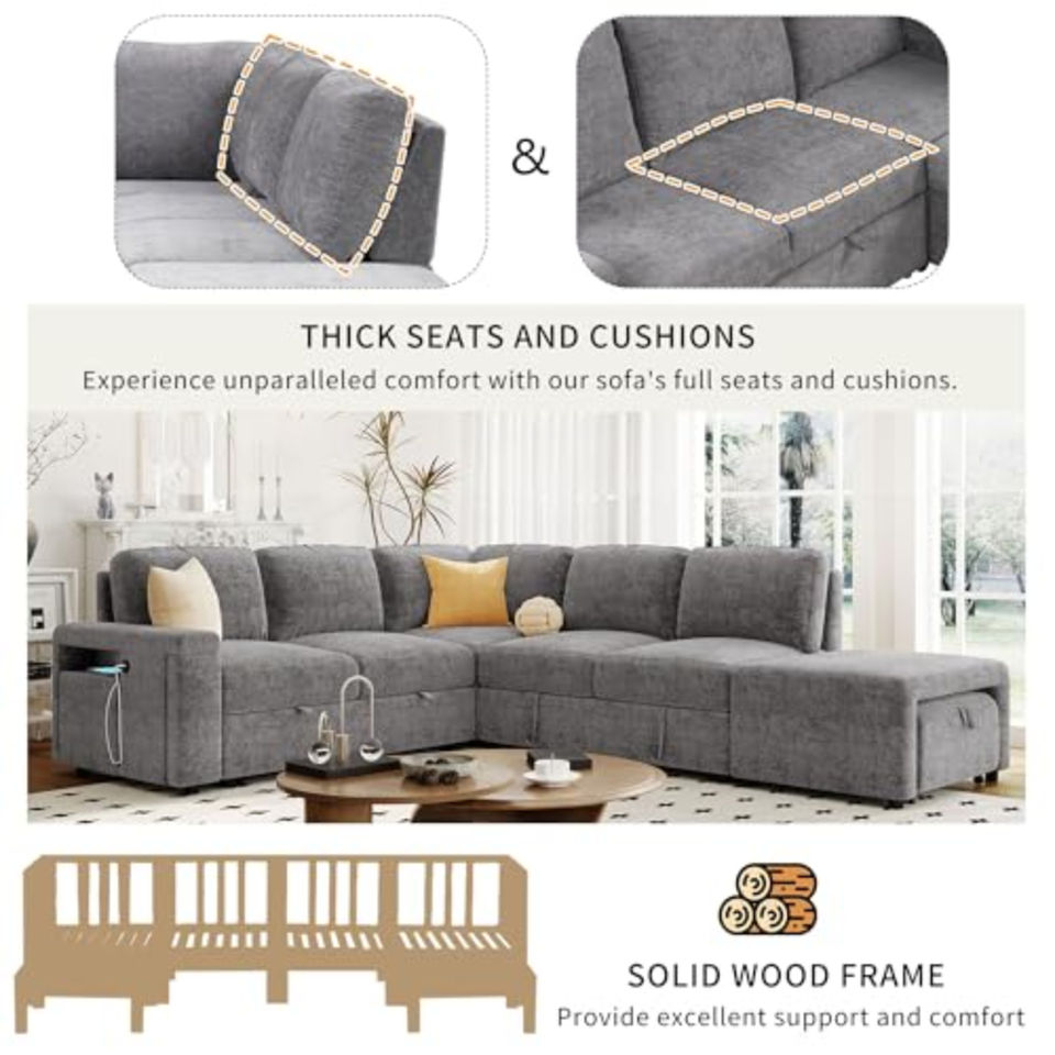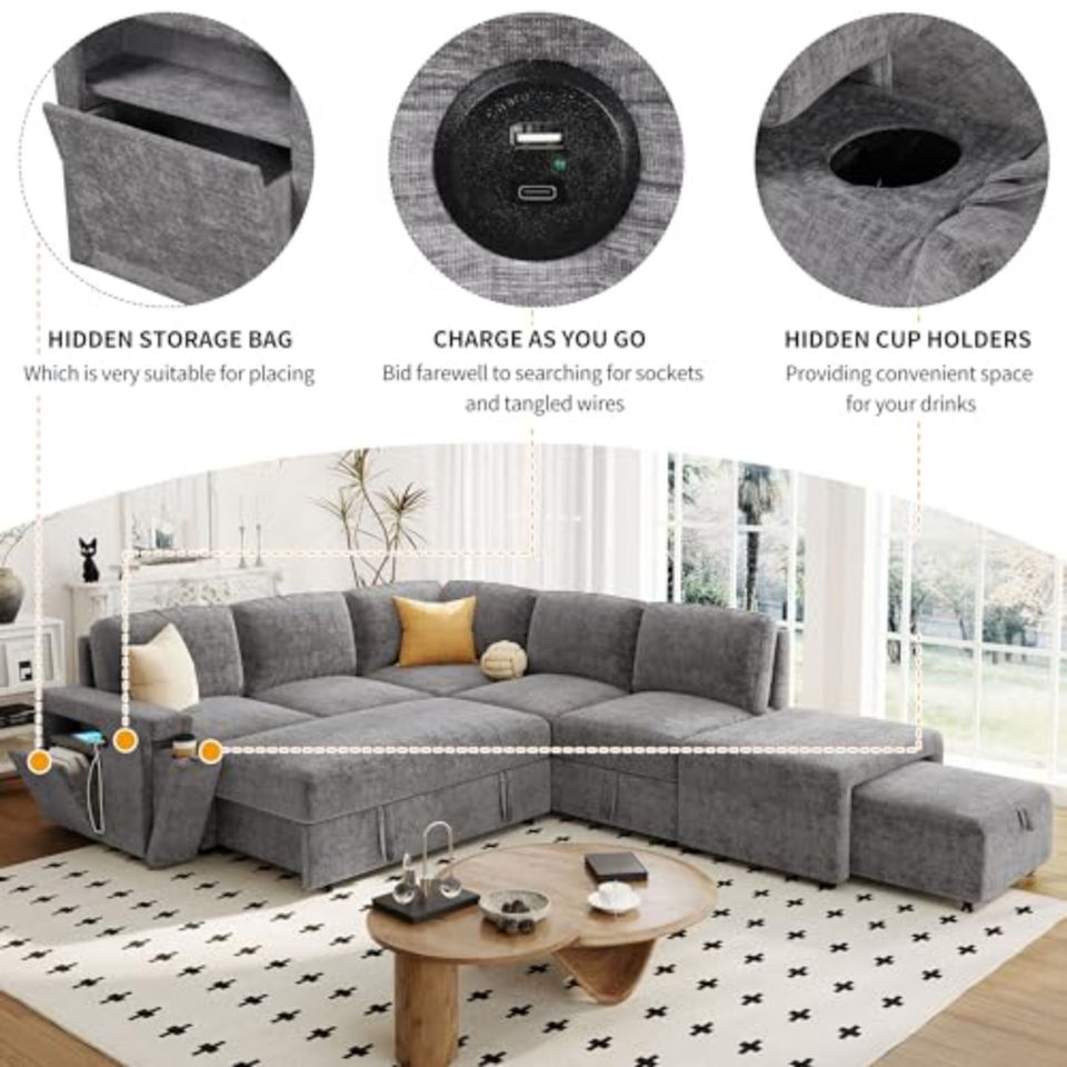 Sofá Modular en Forma de L con Otomana de Almacenamiento, Portavasos USB, Tapizado, Seccional, Mueble de Interior para Sala de Estar