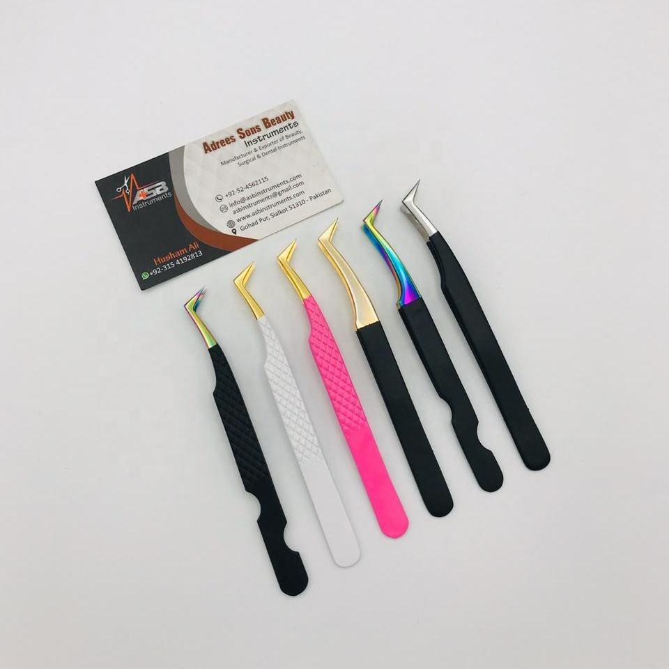 Alta calidad logotipo personalizado tipo L volumen ruso pinzas de extensión de pestañas Acero inoxidable sólido al por mayor