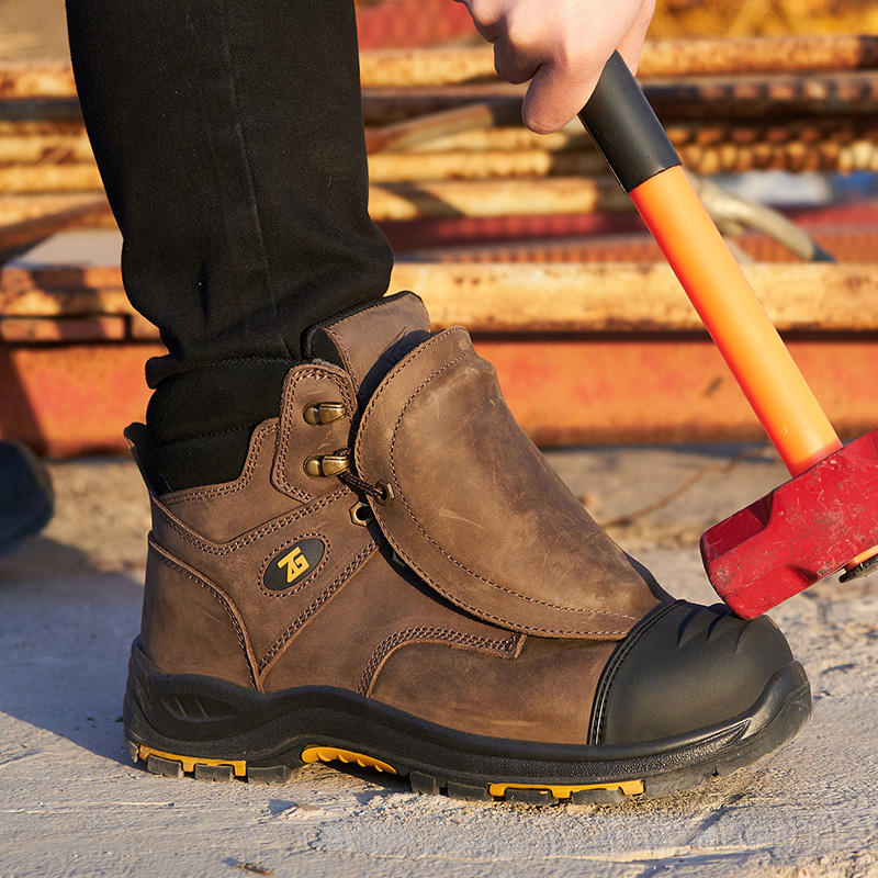 L611-1 calzado de soldadura de alta calidad con puntera compuesta, color marrón, resistente al aceite y al deslizamiento, botas de seguridad con protección metatarsiana para minería