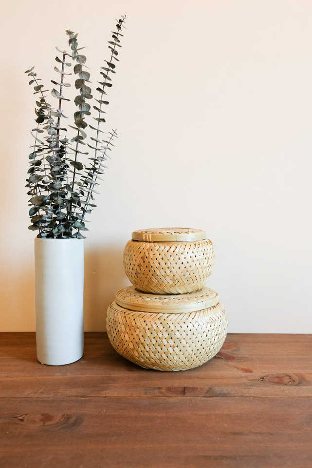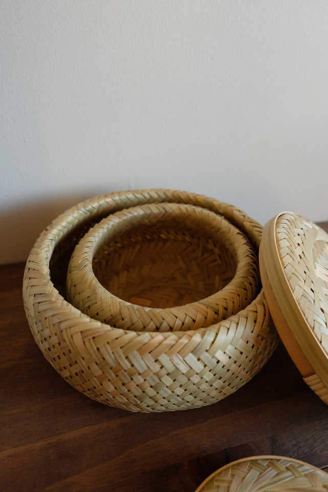 LA LUNE-Juego de cesta de bambú con tapas, cesta de almacenamiento con tapa