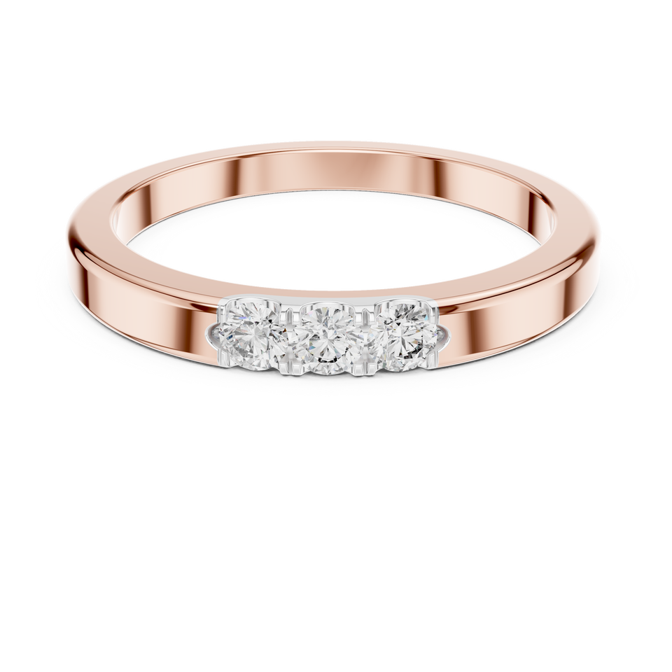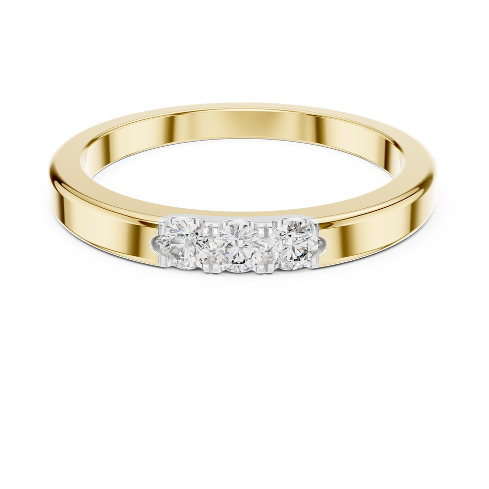 Anillo de Oro Amarillo de 18 Quilates con Tres Diamantes Redondos Cultivados en Laboratorio, Chapado en Rodio, para Uso Diario, Regalo Glamuroso de San Valentín para Mujer