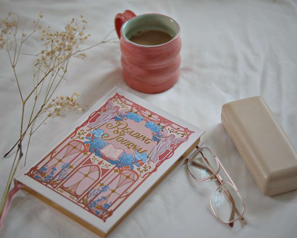 Diario de Lectura LABON Angel, Cuaderno de Tapa Dura con Lámina Dorada, Agenda A5, Diario de Reseñas, Papel Resistente a la Tinta, Personalizado para Amantes de los Libros