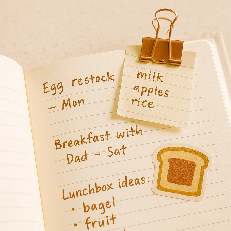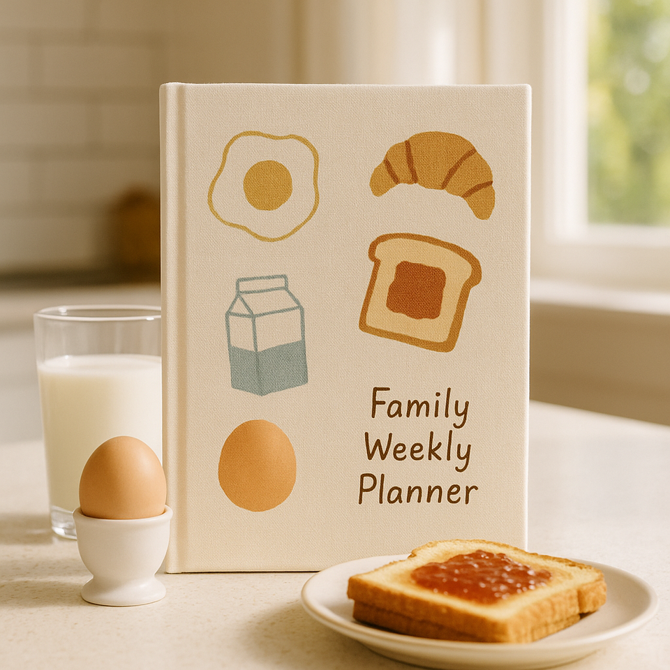LABON Cozy Breakfast Family Weekly Planner con cubierta de tela de tapa dura Iconos de comida lindos para la gestión de comidas y horarios del hogar