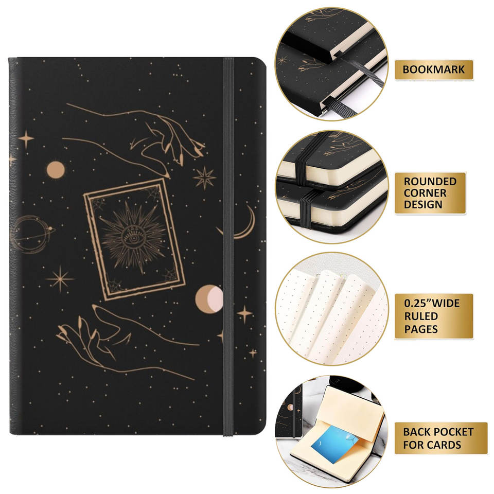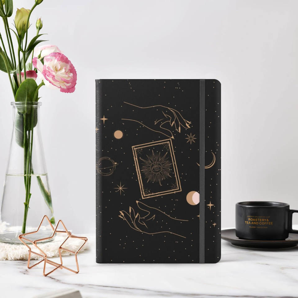 Artículo:Diario forrado de tapa dura minimalista negro símbolo oro