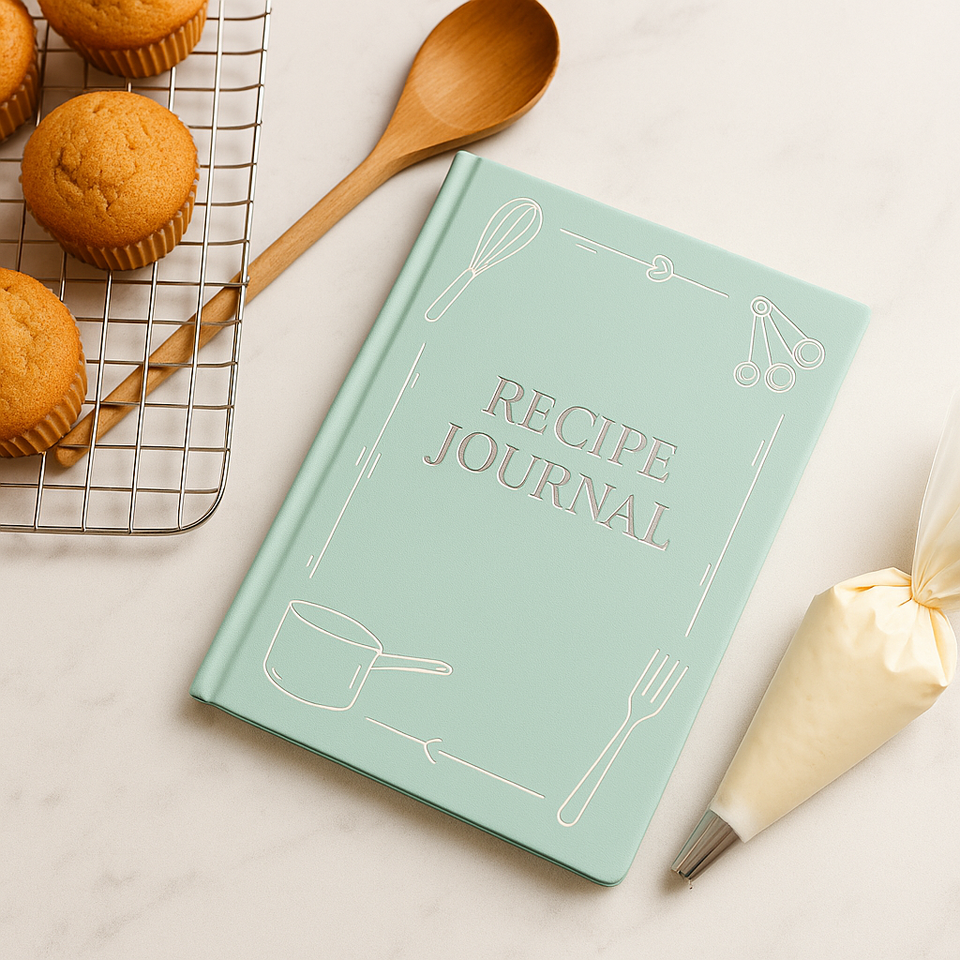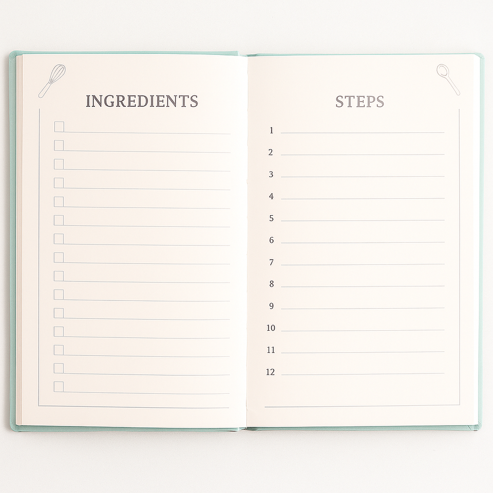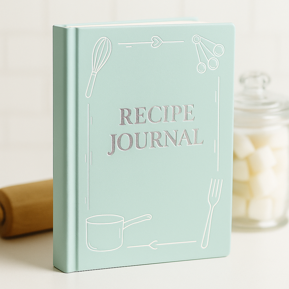LABON, diario de recetas verde menta con papel de aluminio plateado, diseño de herramientas de cocina, libro de cocina de tapa dura para planificación de comidas y Chefs caseros