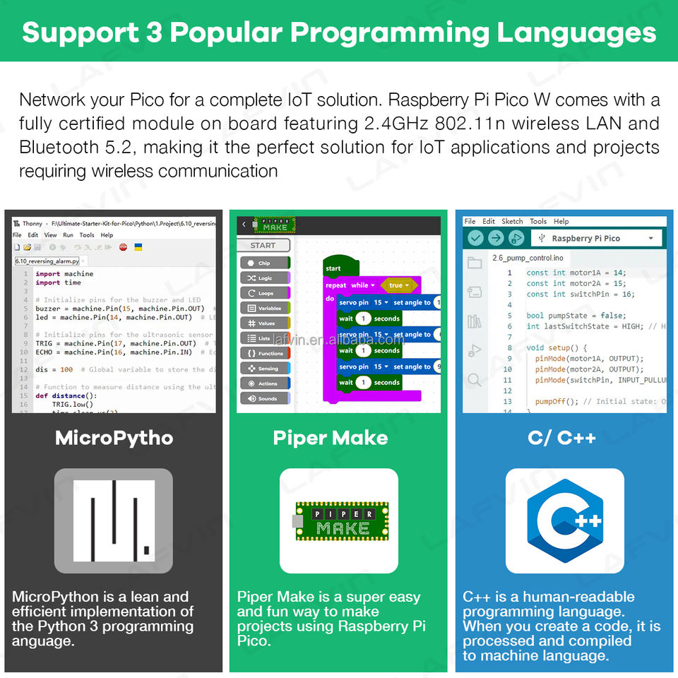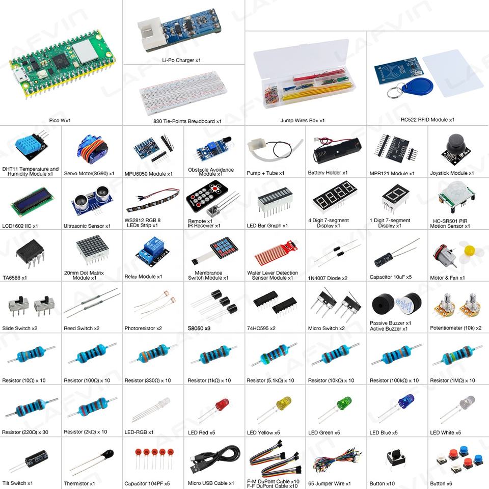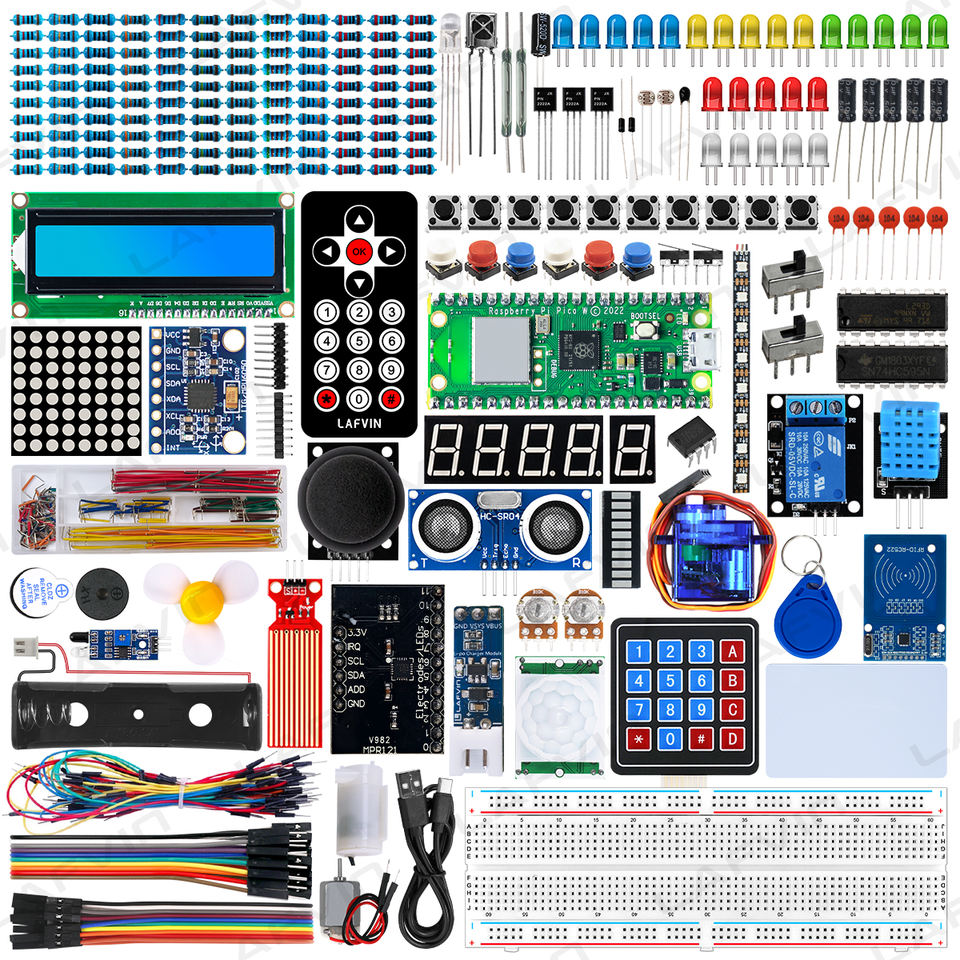 Kit de Inicio Definitivo LAFVIN Raspberry Pi Pico W con Más de 450 Artículos, 117 Proyectos Compatibles con MicroPython, Programación en C/C++ para Arduino IDE