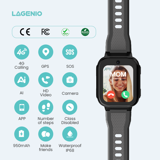 Reloj Inteligente LAGENIO K10 con Tarjeta SIM, Resistente al Agua IP68, GPS, LBS, WIFI, Localización, Silicona, SOS, CE, RoHS, para Niños, Compatible con Android e iOS