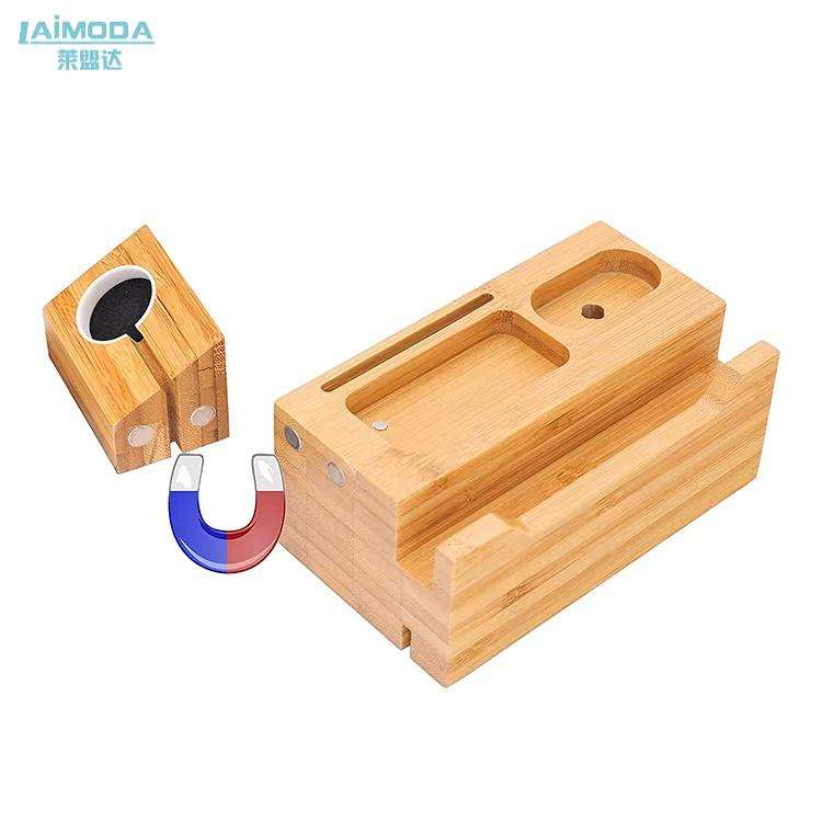 LAIMODA, precio de fábrica, cargador USB de múltiples funciones, estación de carga USB de bambú para teléfono móvil, estación de acoplamiento de teléfono de madera