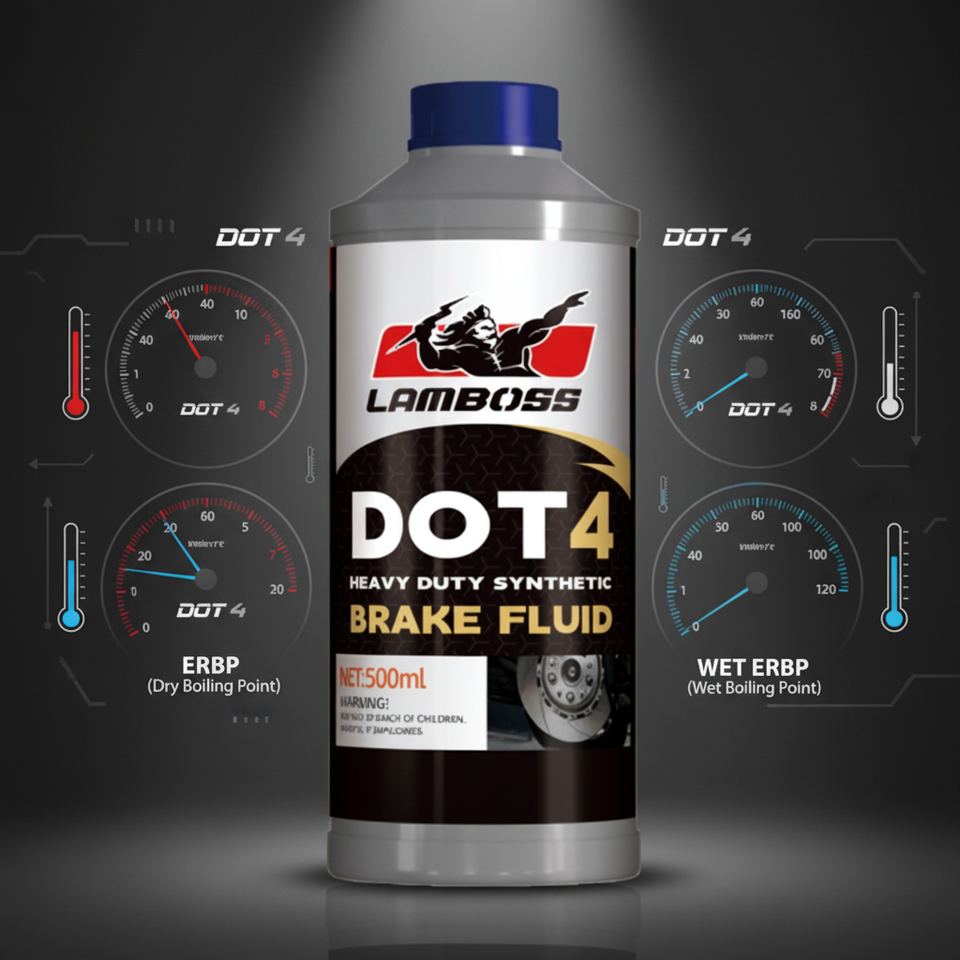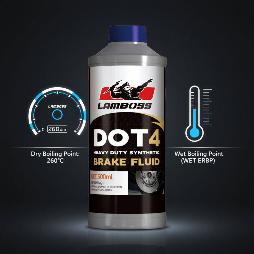 LAMBOSS Líquido de Frenos DOT 4 de Alto Punto de Ebullición en Húmedo, Aceite Hidráulico Sintético de Baja Viscosidad para Sistema de Frenos Automotrices